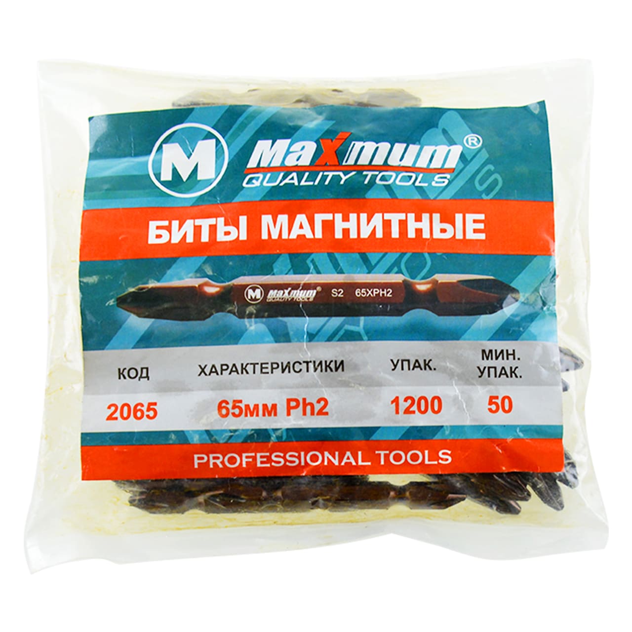 Насадка-бита кованая PH2, 65 мм, двухсторонняя "MAXIMUM" из серии "Эксперт" с глянцевым покрытием подходит для шуруповерта.